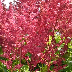 ①アスチルベ アスタリー 円錐形の花穂が ふわふわっと可愛いです ②アスチルベ ショートスイートラズベリー ふんわりとした優しい花穂がこんもりとして 庭が引き立ちます💕 両方とも2年目