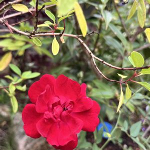 ジューンベリーの紅葉🍁 うまく写せなくて残念ですが、とっても綺麗です♥️ いま咲いている薔薇を摘んで、百均の花瓶に(笑) いい香りです💕