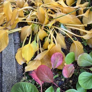 おはようございます☀ ギボウシもトサミズキも色づきました😊