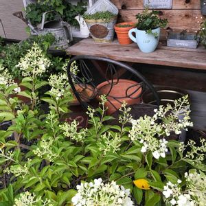 おはようございます♡ 毎日暑くて大変💧 そんな中 玄関先のノリウツギの白さが涼やかさを演出してくれてます(*´ー`*) 道路沿いの我が家車で通る方から 「お家と紫陽花がとてもよくあってますね💕」と お褒めの言葉をいただきました♡ 春に鉢増ししてグンと大きく成長してくれたノリウツギパニキュラータ これから白→黄緑→ピンクと 色変わりを楽しめます💕