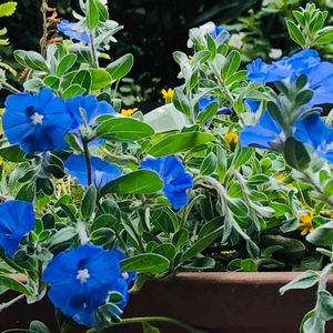アメリカンブルーが元気に咲いています♬ 今日も、不安定な天気です。お出かけは気をつけてください💕