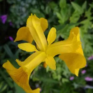 黄色いあやめが咲いていました🎶 和洋折衷纏まりのない小庭です😅 濃いピンク色のシランも草むらから存在アピールしていました✨