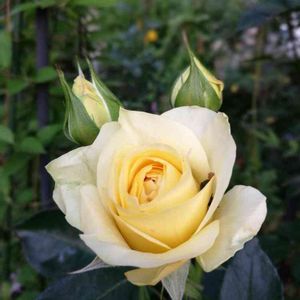黄色い薔薇開いてきました。うちの古株さんです🌹 この色が好きなのかコガネムシが寄ってきて隠れてます😅