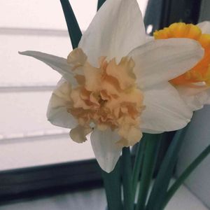 ピンクの水仙が咲きました。1輪だけで、妻が切って花瓶に刺してありました。 以前、買ったのをお隣さんへ差し上げたら、自宅のがなくなって、お隣から頂きました。あまり増えないです。