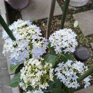 ハイドランジア 万華鏡 昨年露地植えして、動向を見守りつつ見守りつつ大切に見守ってた万華鏡。 昨年と同じ輪数4輪も咲いてくれた! もうちょっと色味が出るとより美しいけど…花首が細く弱いので雨前に✂️切り花として楽しむことに…✨