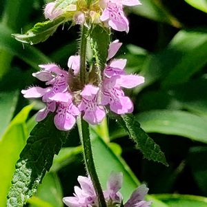 エゾイヌゴマ (蝦夷犬胡麻) 🌿シソ科 イヌゴマ属 ✽高さ40〜70cmの多年草 ✽茎は四角く、葉、萼に剛毛が生える ✽葉は対生し三角状披針形 ✽花は輪生状に数段つき、下唇に濃色の斑紋がある エゾイヌゴマの茎を見ると、刺毛の他に開出した剛毛が密生しています🍀 模様(斑紋)がくっきりしてますね💕