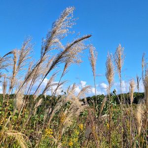 おはようございます☀️ 秋の空とススキ💙💛😺💕