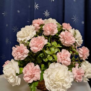 こんばんは😊 10月に入り 涼しくなりましたね。 お花教室🌸🌱 🤍カーネーション 💖スプレーカーネション アレンジメントと🎀😸💕