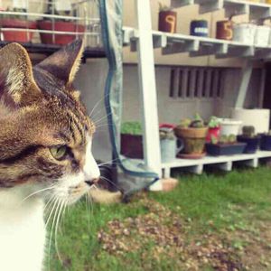 今朝はナナ(愛猫)と一緒にタニパトしました! 写真はパトロールに従事してくれてる凛々しい顔のナナさんです(  ̄ー ̄)ノキリッ うむ。異常なー…?おいっ(-.-) 花壇踏みあらしとるじゃないかぁぁぁーーい。。(〃_ _)σ∥