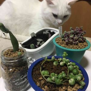 早いけど、冬越しへ向けて植え替え⤴︎ なるべくまとまるようにね💕 手伝ってくれるの❓(*ΦωΦ*)🐾