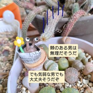 他の鉢へ移動することになったリトープスちゃん。何やら居候くんにお願いがあるようです。
