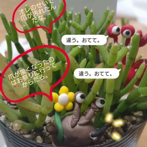 居候く〜ん。違うんだよ〜。おててなんだよ。分ってあげて🤭 カニくんは、大切にしていたおててが汚れてしまったことを悲しんでいたようです。