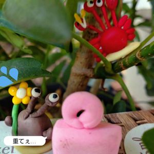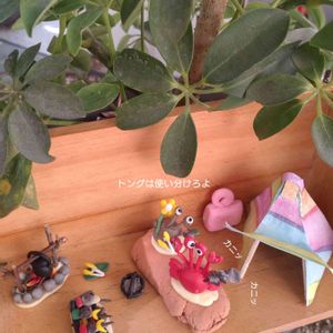 コーヒーの木の育て方難しい。1本ヘナヘナに…。イソカニが見守っています。 友だちがイソカニに風船をくれました😆