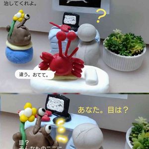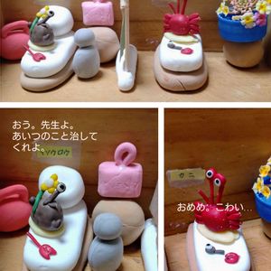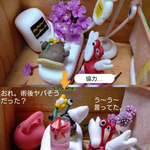 同じ病室にしてくれました。 お互いのパーツを持ってるのはどうしてなの🤭?カニくんかわいそう。その目玉から見られてますよ〜