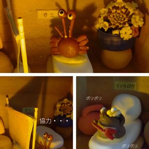 診察の結果、二人とも入院することになりました。甲殻類病棟に向かう前に売店へ。 爪と目玉は隠そうね🤭 ん?居候くん、取れたお目々で見えてるのね😅