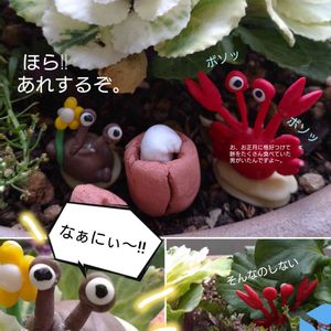 ん?お二人さんどこに行くの? カニくん、何持ってるの?楽しそうだねぇ。居候くんは大荷物だねぇ。