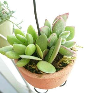 おはようございます⛅️ 夕方頃から☔️が降るかも…と天気予報では言ってます💦 うーん…鼻風邪をひいては治っての繰り返しであんまり体調が善くありません。 若い頃に比べると風邪の治りが遅く、若くないんだなぁ…としみじみ感じます😓 ヤコブセニー…。 親株さんから増えてカットした子です。 うーん?🤔 私の中ではもう少し平べったい子のイメージなのですが、なんで…? なんでこんなに丸っこいの? あなた達のお母さんはもっと平べったいわよ。。。o(゚^ ゚)ウーン 成長すると下垂れしてくるはずなのに、下垂れしてこないで、しかもロゼット状になってきちゃって…どういう事⁇ まぁ、これはこれで可愛いから良いんだけど(๑˃ꇴ˂๑) 紅葉すると綺麗な紫色に変化します。 早く色付かないかな?