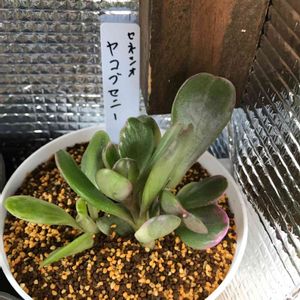 年末に次女と選んだコ✨ お迎えしたもののサッパリわからない😅 紫色に惹かれて狩ったけどグリーンになるんですね✨ <記録> *春、秋に生育! *夏の暑さ、高温多湿に弱く、蒸れると 根元で腐るので、風通しのよい場所で管理 *生育期にはほかの多肉植物よりは水を好む *平たい葉のヤコブセニーはほふくしながら成長 *秋にはうっすら紫に紅葉 *葉ざしはできないので茎をさして増やす
