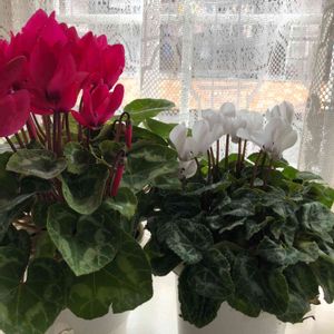 おはようごさいます。🍁 今日風が強く寒い朝です🌺 シクラメンの兄妹です、赤いお花が妹ですが(笑) 今日よろしくなのだ(๑╹ω╹๑ )