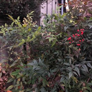 紅白の南天です。 奈良の実家の家の前で咲いてます。