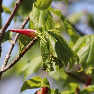 ウワミズザクラ バラ科ウワミズザクラ属 落葉高木 別名はハハカ、コンゴウザクラ、アンニンゴ、ウワミゾなど。 和名のウワミズザクラは、古代の亀朴(亀甲占い)で上面に溝を彫った板に使われていたことに由来する。また、葉がサクラに似ていることから「上溝咲」となり、転訛したとされている。 北海道西南部、本州、四国、九州に分布。 暖地の山野に自生し、日当たりの良い谷間、沢の斜面、小川沿い、雑木林などに生育する。 花期4〜6月 葉が芽吹いて展開したあとに、長さ6〜10cmの白い総状花序が出て、多数の雄しべが目立ちブラシのように見える。 ①〜③ 4/18撮影 ④⑤ 3/28撮影(新芽と花芽) 🏷️木曜日は木 に参加させていただきます。