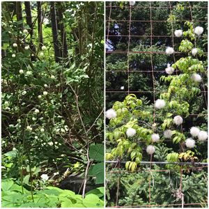 クレマチス マクロペタラが咲きそうです 今年は花数が少なかった(><) 古い枝葉は剪定したほうがいいのかな?