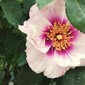 【アイズフォーユー】【ど真ん中の日】 うちにあるバラの中でも、一番丈夫で病気に強いバラ。 一重咲きで、ブロッチとシベのコントラストが、かわいいし、とても香りがいいです😍 こんなに濃い色で咲いたのは、初めてだったりします。 例年だと、もっと白っぽくて、ブロッチは紫ですね。