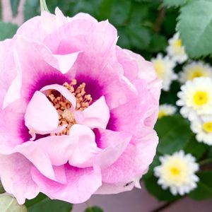 バラ🌹 アイズフォーユー 🌿💗💜 中心部の濃いピンクが 個性的ですね。 ムクゲに似ています。 久留米石橋文化センターにて 🏷水曜ローズショー