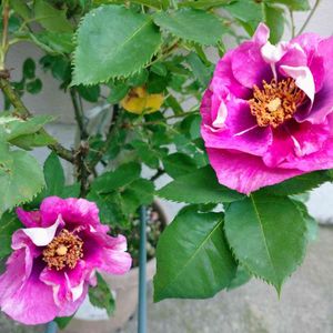 鉢植えのバラがいっぺんに咲きました🌹 上からスーベニール ドゥ ラ マルメゾン ミセス オークリー フィッシャー アイズ フォー ユー、かなり芳香あり✴️✴️✴️