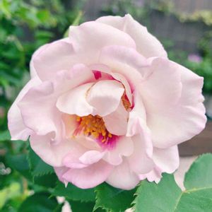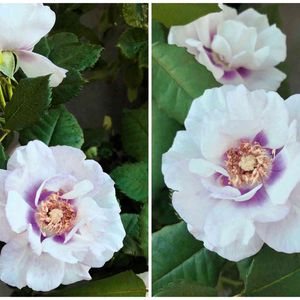•バラ アイズフォーユー 咲きたての花弁はもう少し黄みがかったクリーム色。これは咲いてから4日目くらいの黄みが抜けたやつ。 今朝は雨だったからちゃんと撮れてないけどそれでもきれい🥺✨ ライラック色のブロッチと黄色い蕊の組み合わせが最高なの! それが象牙色みたいな白い地肌に乗るからとても上品☺️ 地肌が濃いめのピンクで咲く時もあるようだけど、明るくて元気が良い感じになるのかな😆 お迎えして良かった。 香りはスパイス系の向こう側にカレーがおる🍛 窓開けて部屋の中にいて、 あ5軒くらい向こう側のお家の夕餉はカレーだな って思うくらいの距離感のカレー。
