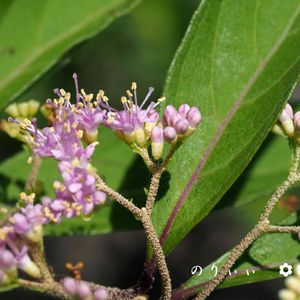沿道沿いの花壇で 出会いました♪ ムラサキシキブだと思い込んでましたけれど 実の付き方・鋸歯が上側のみ?・枝が垂れて~等で今日のお花なのかなぁ🤔🤷🏻♀️ ☝️🐦️🎁?シャリンバイの周辺で🟣実❇️を付け🌀蔓性植物に巻き付かれてたり賑やかでした 11月上旬です🎶