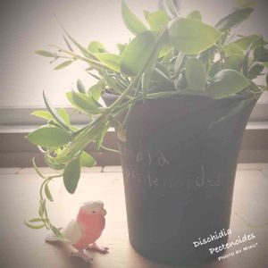 Dischidia pectenoides🌱 昨日嵐の中お迎えしたカンガルーポケット ◟꒰◍´Д‵◍꒱◞💕 GSのみなさんがpostしてる 可愛い子ちゃんに憧れて ついにうちにも(;//́Д/̀/)'`ァ'`ァ💖 可愛いなぁ~可愛いなぁ~😍💕 貯水嚢はまだ無いのだけど いつか立派なタンクとお花を つけてね😆 楽しみ楽しみ(*´꒳`*)💖 🌱 🌱 🌱 🌱 🌱 🌱 🌱 🌱