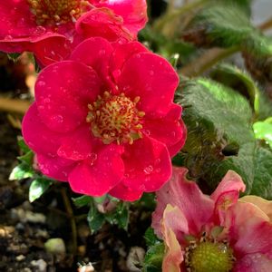 赤い花の苺🍓 また花咲いて楽しませてくれます💕👀 可愛い❤️