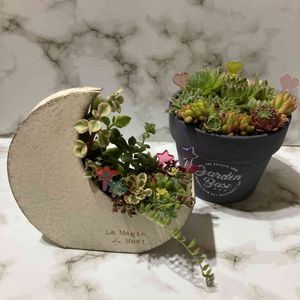 おはようございます。 主人の職場の方から 鉢を預かり お家の多肉植物を カットして 寄せ植えをしました 右の鉢には たくさん子株ができて 根がついたセンペルビウムの 寄せ植えをしました ピックは100均の お弁当用ピックです!