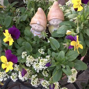 おはようございます。 パンジーとアリッサムの 寄せ植えです お花屋さんのすみで お買い得品のシールが貼っていました!