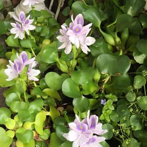 おはようございます。 ホテイアオイのお花が たくさん咲いています ペットボトルで育てています!