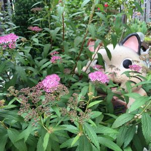 おはようございます😊 シモツケのお花🌸 たくさん咲いてくれています💞 今年ミケねこさんのお顔が隠れてしまう〜🙀