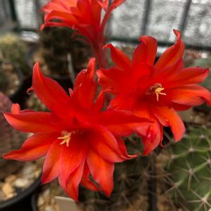マツカナ 妖仙玉です。 去年の夏の終わり頃に初めて1輪咲いて安堵したのですが、今年は梅雨の真っ只中に3輪咲きました。 しかし湿度と日光不足のせいか花がシャンとしません。