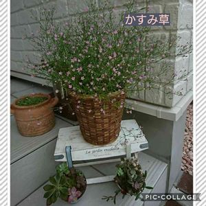 またまた、旦那さんの実家のご近所の方から 抱えきれないほど、かすみ草を頂きました。 4分の1ずつ、お友達やお隣さんにも お裾分けしても尚、 我が家には今かすみ草が4カ所にも活けてあると いう…ピンクのかすみ草初めて! 昔の花束の脇役的なイメージだったけど、 お部屋の中が、ほんわり優しい空気になる お花ですね。かわいいな〜。 下さった方、たっくさんお庭に植えてらして、 植えてる姿も初めて見ました。