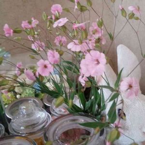ピンク色のかすみ草です♡ お庭に咲いてるのを切って ドライフラワーにします お花は少し大きめです♡ かすみ草は挿し木にして 地植えで大きくなったらしい です( 母が言ってました )