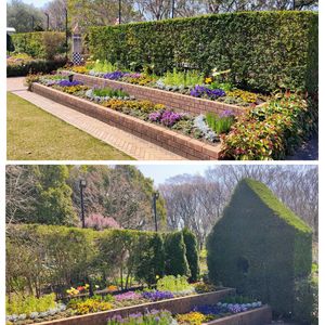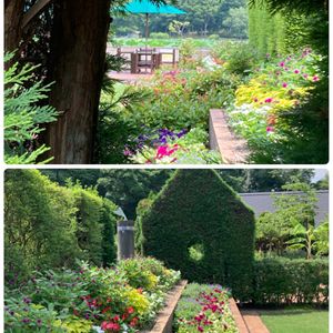 堺市大泉公園🌺🚶🏼♀️🚶🏼♂️花散歩⑧ トピアリーの窓から 秘密の花園、覗いてみれば👀!? あらあら、人がいっぱい😆 ふれあいの庭は🌸🏵️🌷🌺🪻🌼🏵️花ざかり