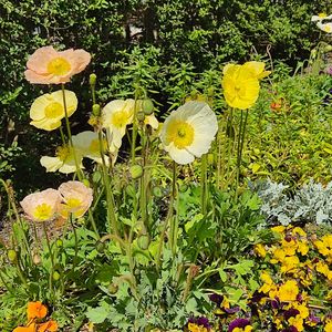 堺市大泉公園🌺🚶🏼♀️🚶🏼♂️花散歩 ふれあいの庭 内側から〜秘密の花園、って感じじゃないわね😅(奥にさっき覗いたトピアリーの窓 ちっちゃ!) 花壇には🌺ゴデチャの花とシロタエギクが見えるけど、ほかにも〜 〜🌸🌷🌺🌱🌹💮🥀🌳🏵️🪻🌼🌿〜