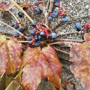 我が家の塀にへばりついている❗️蔦にも実りの秋~😊😚🤭 ナツヅタというお名前でした☺️
