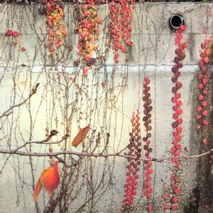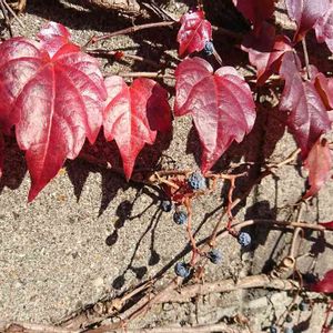夏蔦の花柄 葉も実も落ちて、サンゴのよう💕 🍁🍇🍁🍇🍁🍇🍁🍇🍁🍇🍁 夏蔦 ナツヅタ Parthenocissus tricuspidata ブドウ科ツタ属の、落葉広葉樹 花期 6~7月、実は10月に黒紫色に熟す 花も実も小さく葉陰に隠れ、鑑賞の対象にはならないが、秋の紅葉が美しい。また、新緑も美しい。吸盤で壁面を登はんするので、大小さまざまな構造物の緑化に用いることができる。落葉性なので、冬季は蔓だけになるが、それはそれで風情がある。 ( 川崎みどり研究所 より) 🇫🇷 Vigne vierge à 3 pointe 3つの尖りの野葡萄 ⬆️訳し方‼️😂 どう言えば良いかしら 葉っぱが三裂してとんがりが3つあるからこの名前なんですが💦 🍁🍇🍁🍇🍁🍇🍁🍇🍁🍇🍁