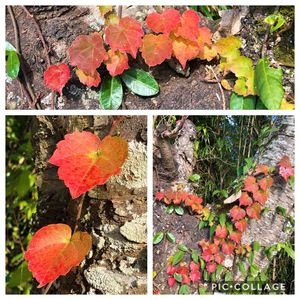 いつもの、散歩コースで小さな紅葉を見つけました🍁 【ナツヅタ】 秋に紅葉🍁して落葉するため、ナツヅタの別名がある。 日本·中国原産で、平安時代の絵巻物にも見られる。 【ホラシノブ】 本州~九州の山野に生える。 日当たりのよい乾燥した斜面などに群生する。