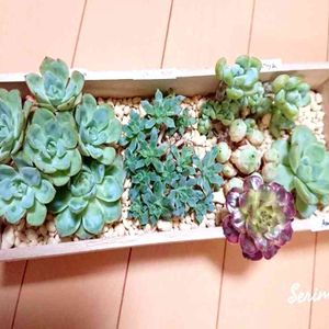 ピーチ&クリームꕤ*。゚ お迎え多肉ちゃん② 群生多肉でボリュームあります♪ お店で見て初めて知った名前の子です。 大きくなぁれ(੭ ´͈ ³ `͈)੭⁾⁾・*♡