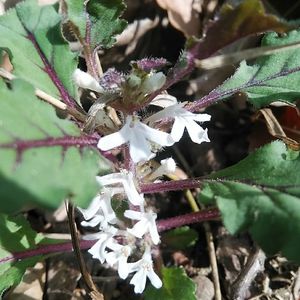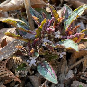 ツクバキンモンソウ(筑波金紋草) ・表面が葉脈に沿って紫色になり、裏面は全体が紫色をおびているところが特徴。 ※葉裏の色を確認してなかったので再度出かけてきました🚃 よく見たら沢山の株があり、この紫色の花のタイプも白色のタイプ、淡紫色のタイプ、葉裏は全て紫色をしていました🙌 ・淡い紫色〜白色をした長さ約1センチの唇形の花をつける。 ・上側の花びらは極端に短く約1ミリ。そこがニシキゴロモと見分けるときのpoint 2年前にも出会っているので、見たら直ぐにわかりました🎶 過去の投稿見たら今回同様紫色の花と白色の花をコラージュしていました〜 ※4/5葉裏の確認してきました! どれも紫色でしたので、ツクバキンモンソウとします🙌 📷 2023/4/3 高尾山