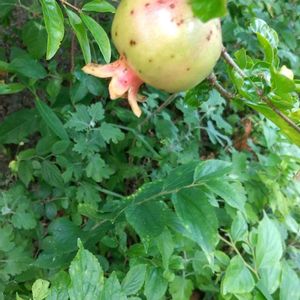 ザクロ ②③実がいっぱい付いてます。6月初め。 子供の時 よくもらっていたけど、実(種?)はいっぱいなのに 食べるところない~と言っていた気がします😌