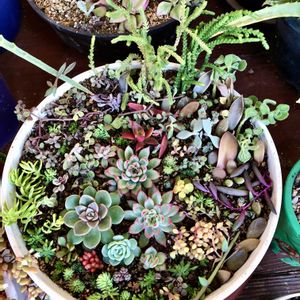 こんにちは😃😃 多肉ちゃんの寄せ植えですo(^▽^)o🪴🪴🪴 花月夜さんあまりにも可愛くてお迎えしました🥰👍 虹の玉も欲しくて主人と一緒に大好きな園芸店へ行き、やっぱり多肉ちゃんもお迎えしました。♪(๑ᴖ◡ᴖ๑)♪💐 お花は明日植木鉢に植えます😄💐 ① ◎ セダム ヌスバウメリアナム ◎ 春萌 ◎ エケベリア 花月夜 ◎ 虹の玉 ◎ ブロウメアナ ◎ 丸葉マンネングサ ② ◎ 朧月 ◎ 紅葉祭り ◎ 虹の玉 ◎ ブロンズ姫 ◎ ブローメアナ ◎ 斑入りベビーサンローズ ◎ フクリンマンネングサ ◎ 丸葉マンネングサ ◎ 青緑 ◎ 不死鳥 ◎ 花蔓草錦 アプテニア 冬越しできたら、また綺麗にしようと思いました。 ٩(๑❛ᴗ❛๑)۶🪴🪴🪴 今日も風がビュンビュン吹いて、風が吹かない場所で、多肉寄せ植えの鉢を全部出してもう一度寄せ植えしました。 ╰(*´︶`*)╯♡💖 しっかり根を張っていた多肉ちゃんもあり、小さな赤ちゃんの多肉ちゃんと色々で、新しく購入した多肉ちゃんは少しで以前の多肉ちゃんをたくさん使いました😄🥰👍 時間がかかりふー😥😥😅😅😅 としました。 もう今年は多肉寄せ植えをこれが最後にします🥰 また来年アップしますので見に来てくださいね🙇💐 いつもありがとうございます。 m(_ _*)m💖🩷❤️