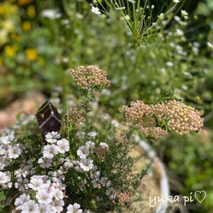 こちらも別のプランターから 溢れ出て〜 🌿タイムの花が咲いてきています🤗 その横下には カーペットカスミソウ かなり昔から… 寄せ植えにしていたのが 鉢を占領… 株分けして地植えにしたらのびのびと 庭の何箇所かで お花も開花しています💕 どちらも広がって暑さ寒さにも強い子達です🤗